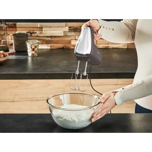 Rien ne vaut le plaisir de pâtisser à la maison, et Moulinex vous permet désormais de vivre une expérience plus facile et plus agréable que jamais ! Le batteur Powermix Silence de Moulinex a été conçu pour offrir une utilisation plus silencieuse avec des performances sans compromis, créant ainsi le batteur le plus silencieux et le plus puissant*, doté d’une technologie d’insonorisation de pointe et d’un moteur robuste de 600 W. Pâtissez dans le plus grand des calmes grâce à un flux d’air optimisé et à une technologie d’insonorisation avancée. Par ailleurs, profitez de performances robustes garantissant des résultats parfaits, même avec les appareils les plus denses. La poignée ergonomique et dotée d’une finition agréable offrant une bonne prise en main est associée à un variateur de vitesse et à une fonction turbo pour mélanger en toute simplicité. Deux fouets en acier inoxydable garantissent des préparations légères, mélangées, battues et fouettées à la perfection, tandis que deux crochets pétrisseurs en acier inoxydable permettent de travailler les pâtes à frire et les pâtes épaisses. (* de la gamme Moulinex)